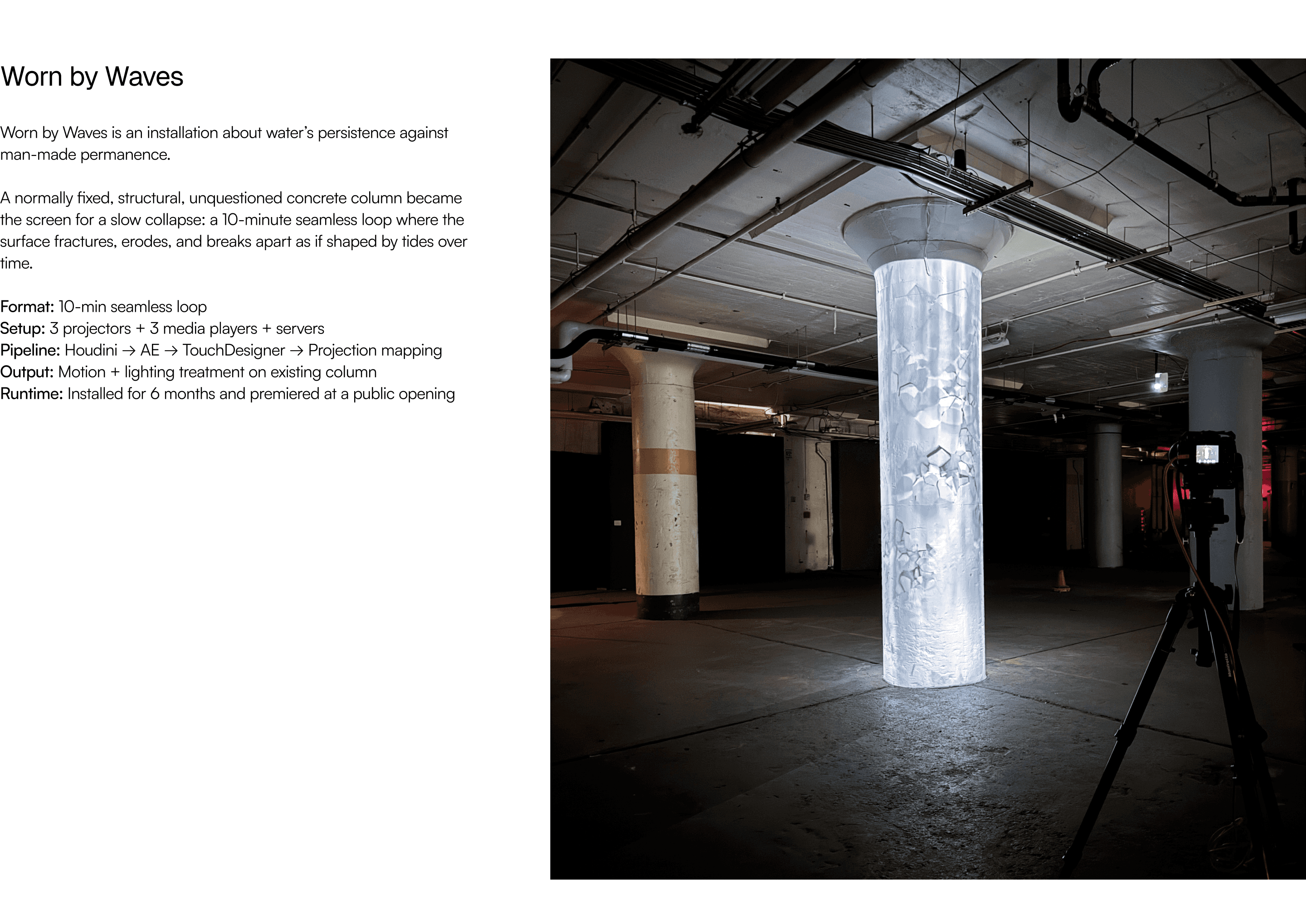 Our team proposed, designed, and delivered a site-specific projection mapping project that treated an architectural column as a dynamic visual surface through motion design, lighting.