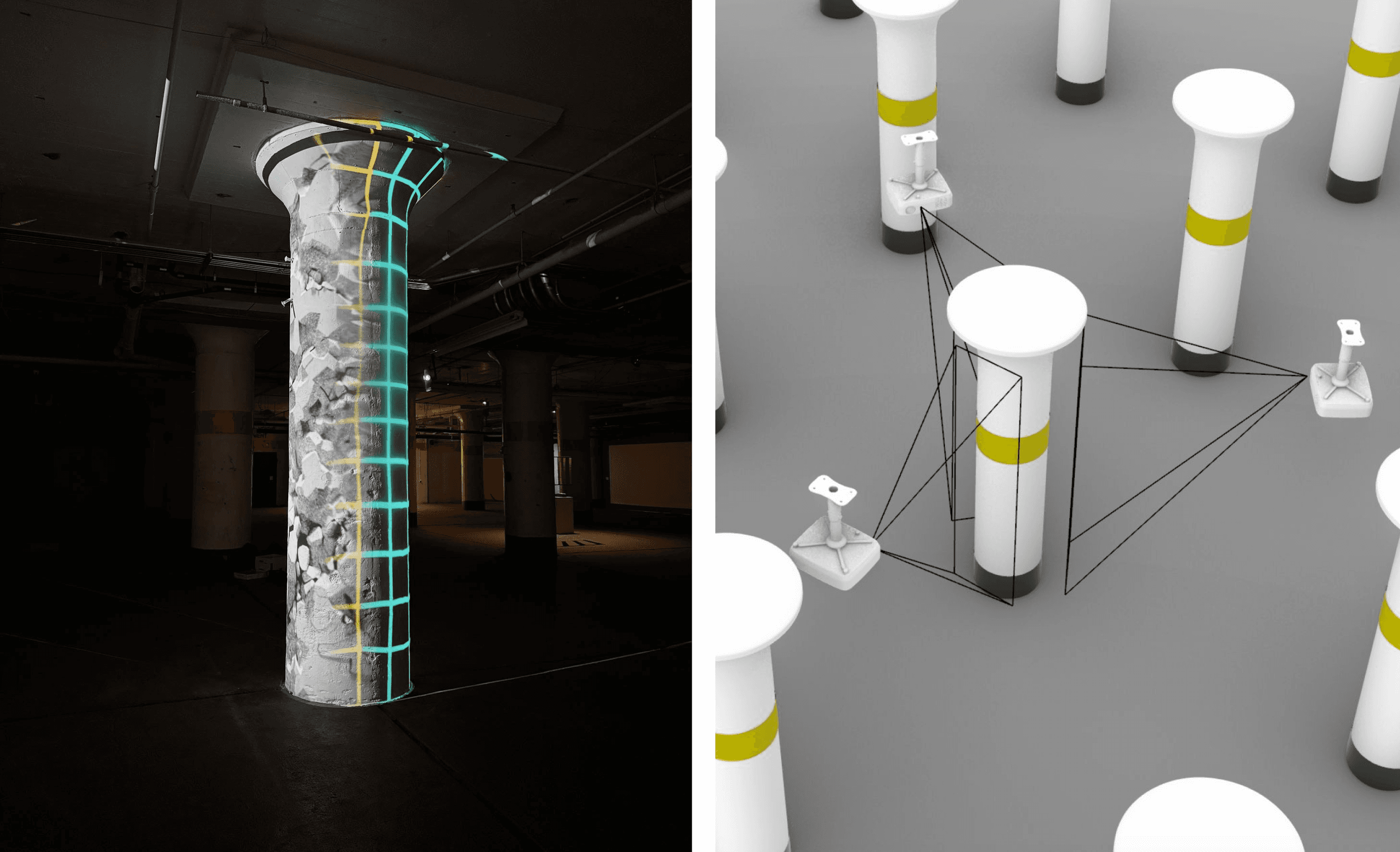 How to translate abstract research themes into a legible spatial experience within the constraints of an existing architectural column.